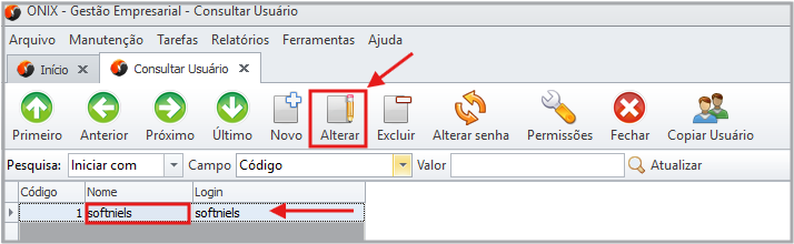 Para habilitar os parâmetros selecione Ferramentas>Segurança>Usuários> selecione o usuário e clique em Alterar