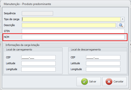 Rejeição 301: O NCM do produto predominante da carga lotação deve ser informado
