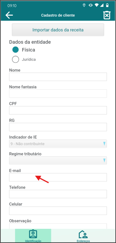 Ao abrir a tela de cadastro, preencha todos os campos com as informações do cliente. No cadastro do e-mail preencher sem deixar espaços.
