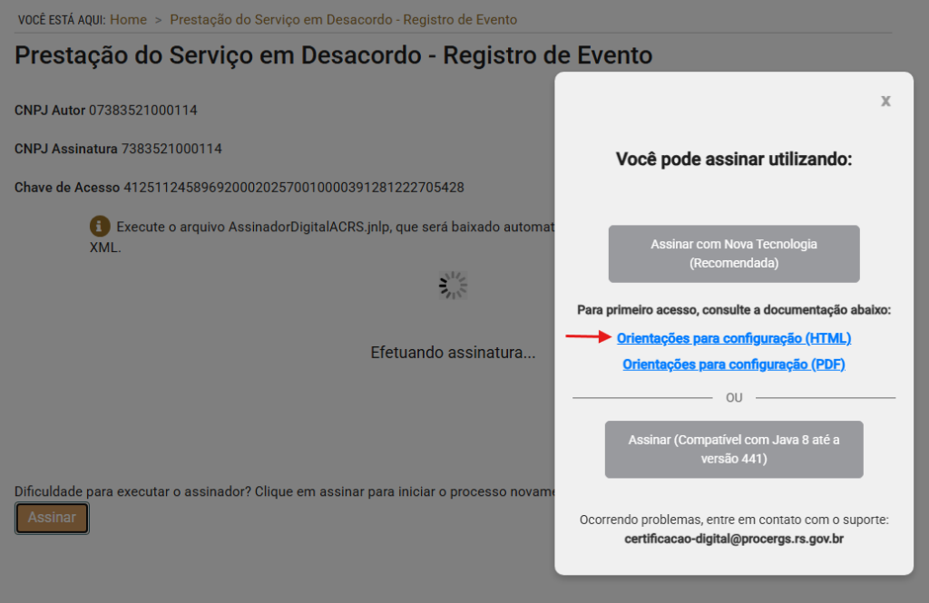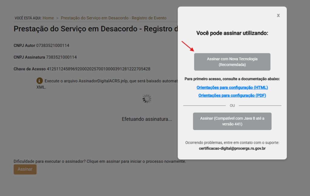 6- Após a instalação retorne na ao site e selecione a opção Assinar com Nova tecnologia.