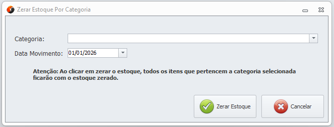 ⚠️ Atenção: ao confirmar a ação, todos os itens pertencentes à categoria selecionada terão o estoque zerado.
