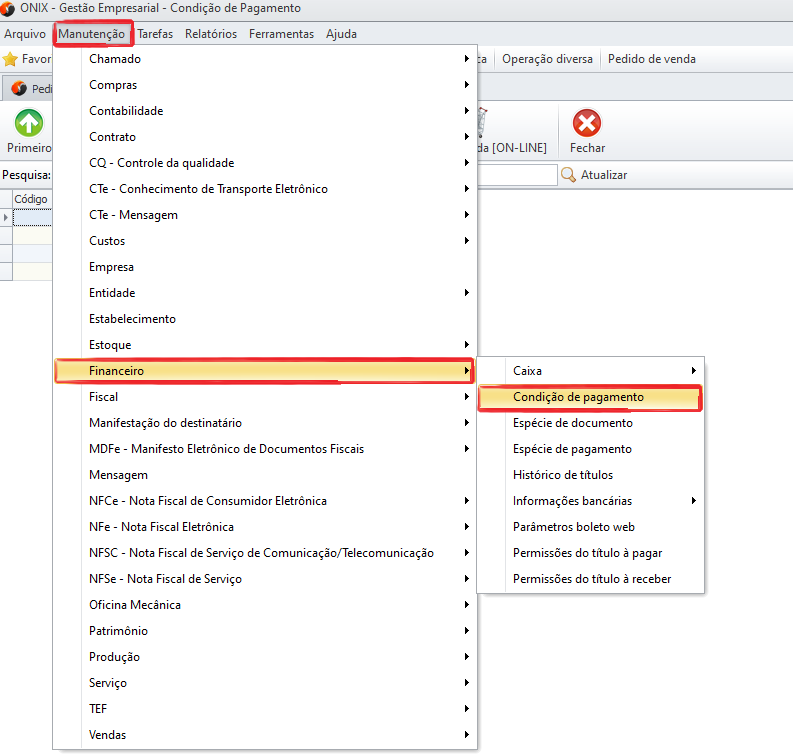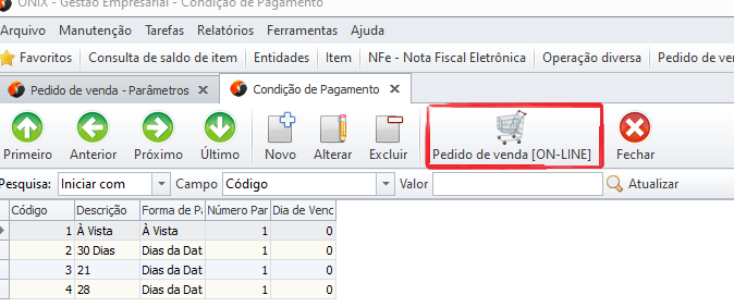 Selecione a opção “Pedido de Venda [ON-LINE]