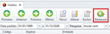 - O botão Restaurar ficará habilitado na tela de Pedidos de Venda.